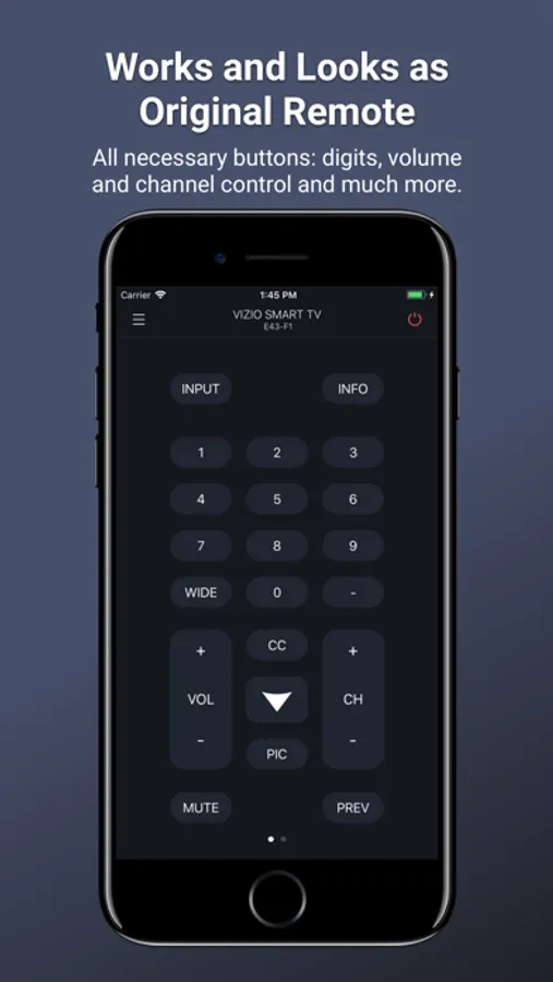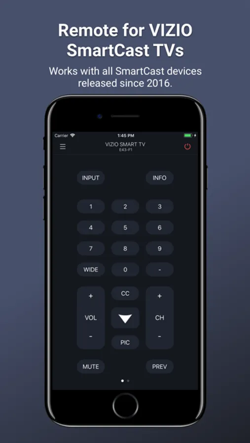 TV Remote for Vizio is designed specifically to control Vizio SmartCast TVs. Just connect an iPhone and a TV to the same Wi-Fi network and you will be able to control the TV using a mobile device after a simple pairing routine.