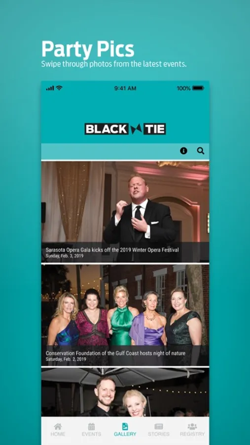 Did someone say party pics? Duh. That’s our primary purpose at Black Tie — event coverage at its finest. Swipe through photos from the latest events right on your phone.