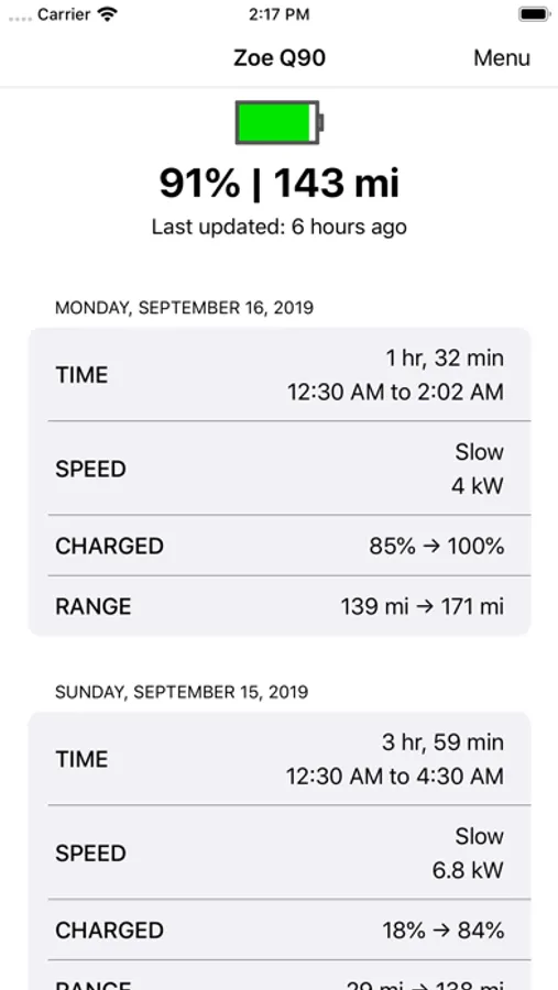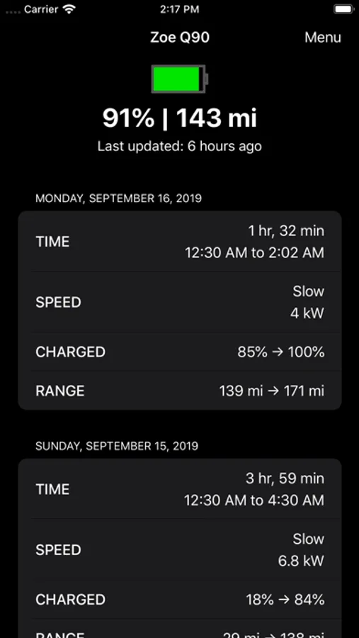 Add the battery status widget to your notification centre so you can always see the current charge level and range of your Z.E. vehicles.