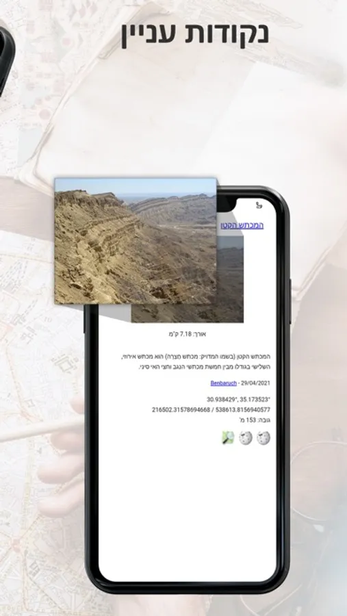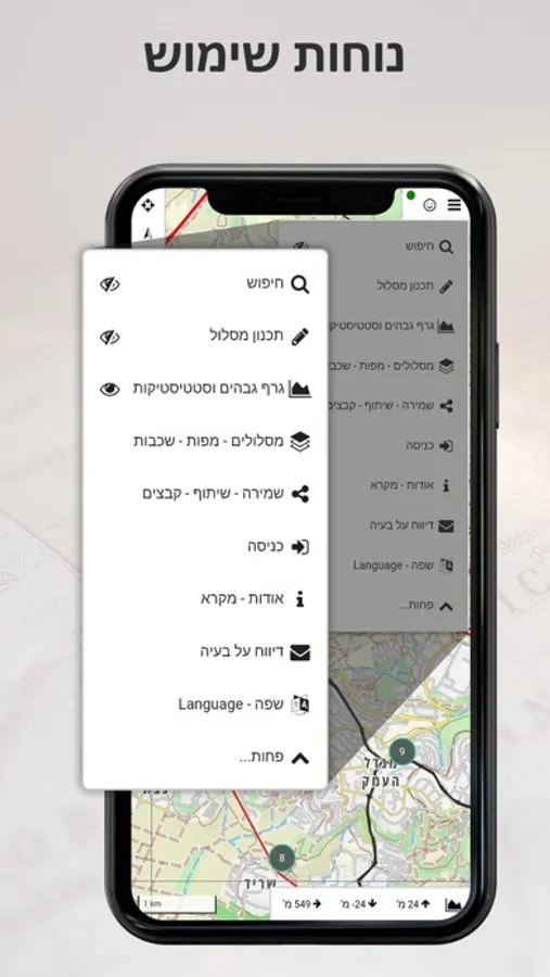 Geared towards hikers, bikers and off-road drivers it keeps you oriented in the Israeli backcountry even with no cellular reception.Use crisp topographic maps to navigate, familiarize with nearby points of interest, plan, import and share routes, synchronize effortlessly with our trip-planning site and much more.
