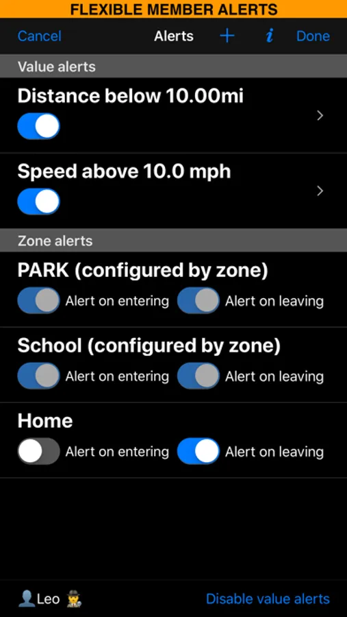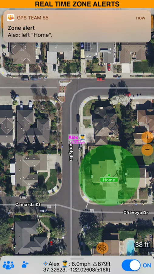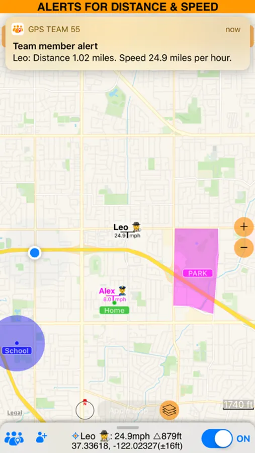 Add polygonal or circular zones and setup alerts for team members leaving or entering.