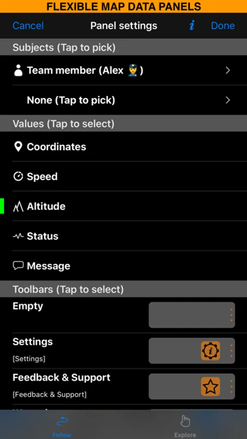 Speed, altitude, coordinates (Lat/Long, UTM or MGRS).