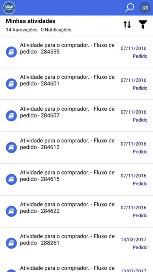 As principais atividades para compradores/aprovadores são: