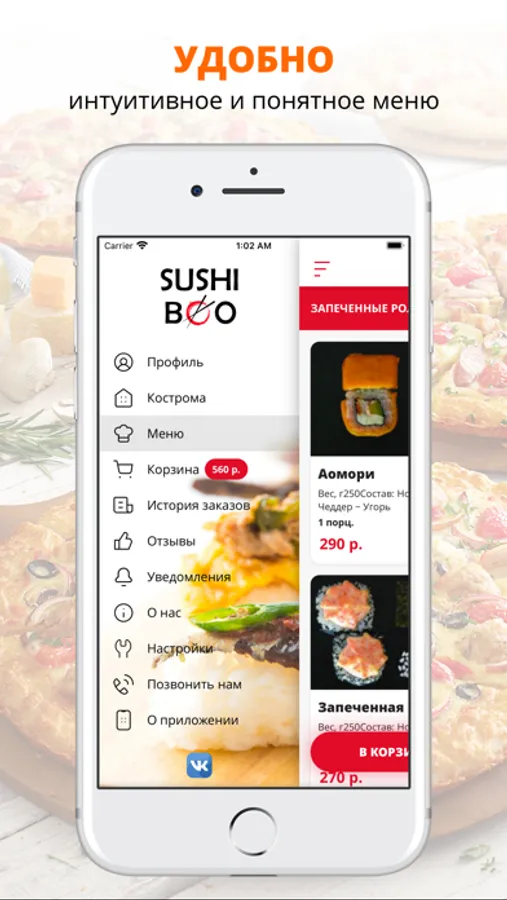 Sushi Boo – это всегда вкусные суши и пицца, приготовленные только из самых свежих и качественных продуктов. Низкие цены, а также внимательность и отзывчивость нашего коллектива не оставят вас равнодушными. Тысячи довольных клиентов уже с нами – Попробуйте и вы! С помощью нашего приложения вы легко можете заказать готовые блюда от Sushi Boo с доставкой на дом или в офис!