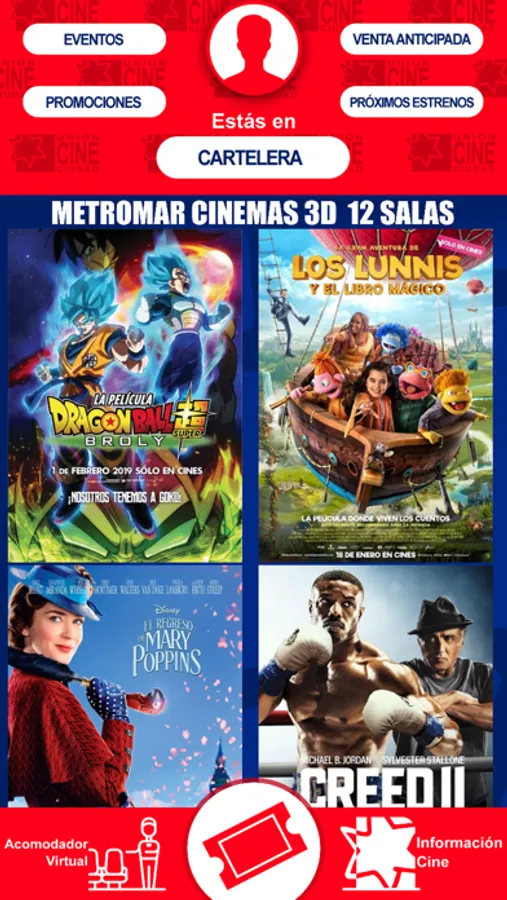 Consultar la cartelera, ver cortos, comprar entradas y productos del bar al mejor precio.