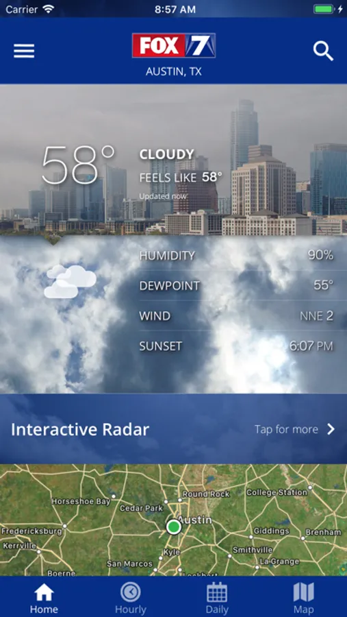 Track your local forecast for the Austin area quickly with the free FOX 7 WAPP. The design gives you radar, hourly, and 7 day weather information just by scrolling. Our weather alerts will warn you early and help you stay safe during storms.