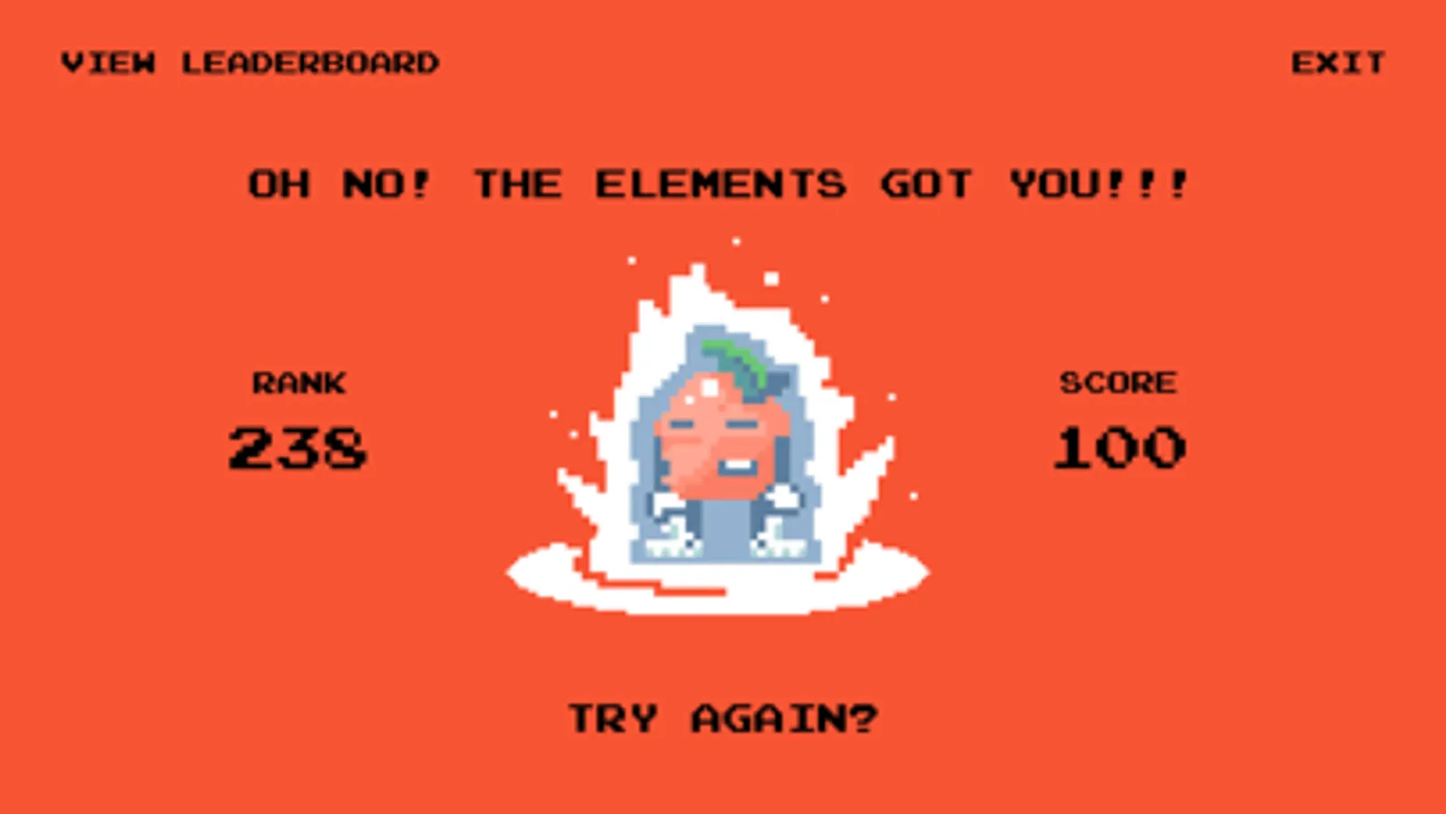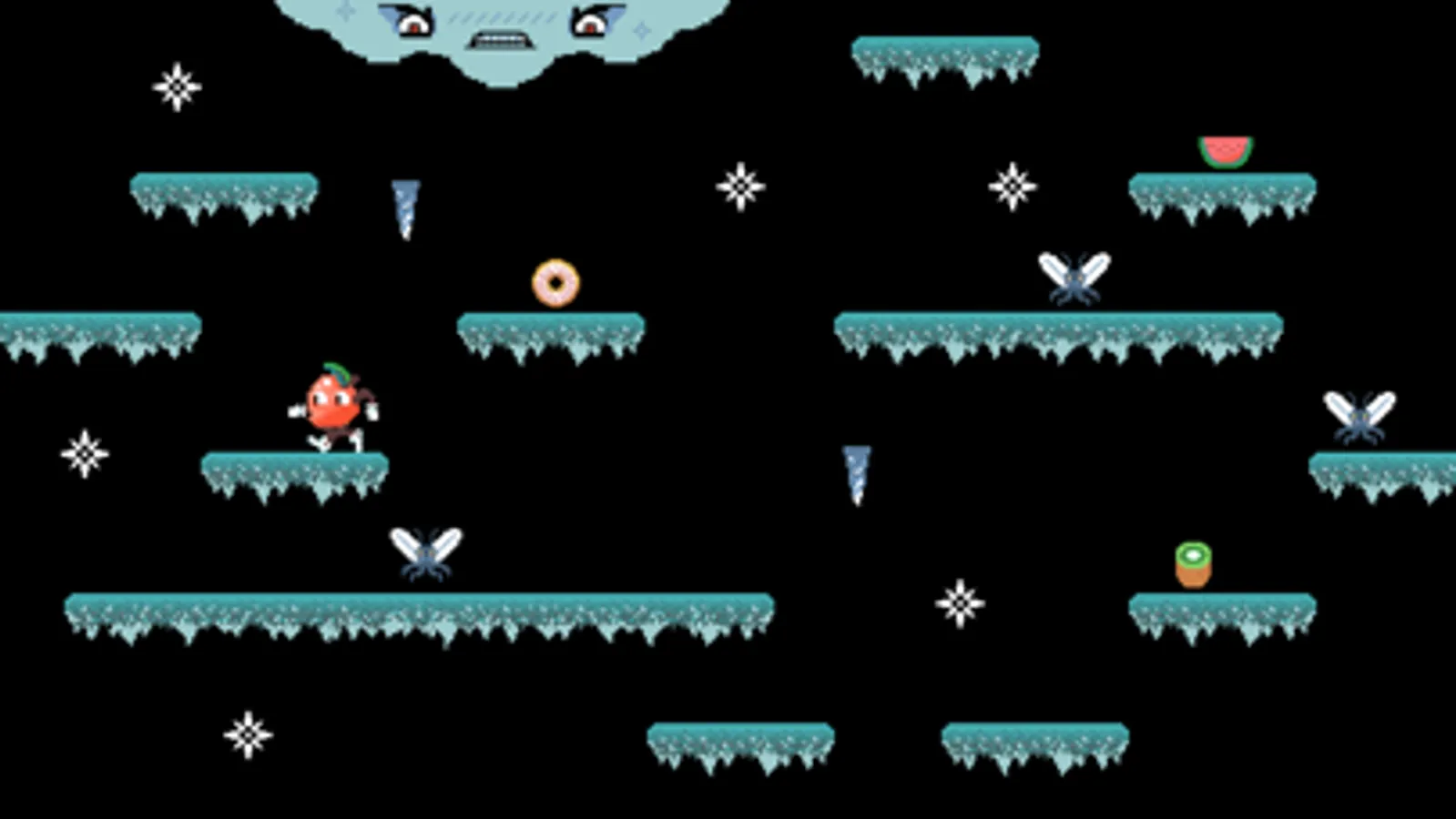 Our character, "Super Peach Boy" was created by Mike Jones, the man behind Creative South. He wanted to portray healthy eating through this character who would be collecting various fruits for points while avoiding snowflakes, icicles, and gnats, all of which are being sent down by the evil Mr. Permafrost who's looking to destroy fresh foods for all.