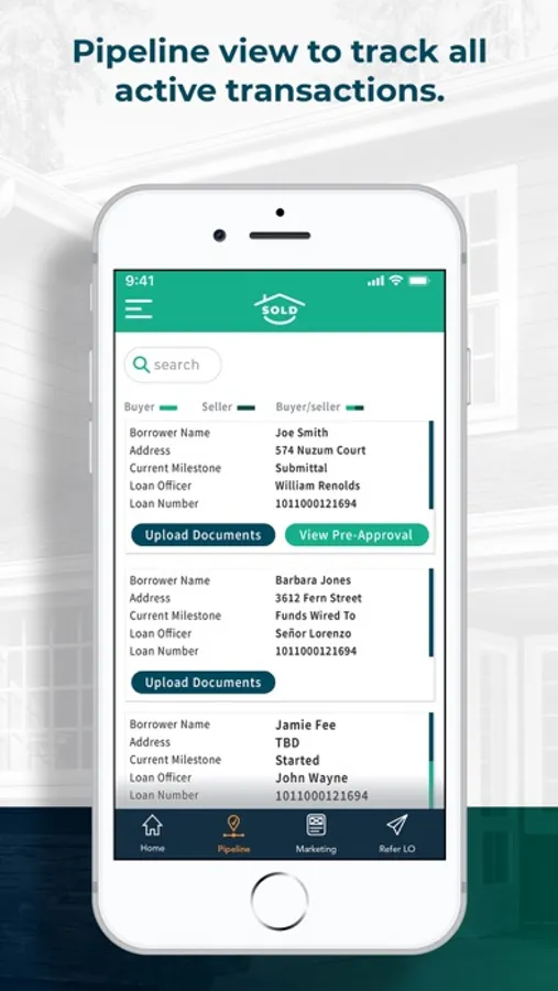 • Pipeline view to track all active transactions being financed by Ruoff Home Mortgage