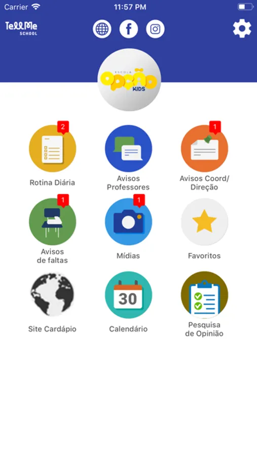 O App Opção Kids Tellme School engloba os mesmos campos das agendas de papel tradicionais, além de oferecer novas e exclusivas áreas de acompanhamento escolar. Desta forma, o aplicativo possibilita o registro desde informações de rotina diária a detalhes sobre informações e avisos diversos da escola, bem como, registro de acontecimentos por meio de imagens (fotos). Além disso, o aplicativo contém um campo de mensagens, onde a escola pode escrever informações importantes para os alunos e/ou seus familiares (responsáveis) e vice-versa. Destaca-se, assim, que o aplicativo disponibiliza que, no instante em que o professor registre informações em qualquer um dos campos da agenda ou grave imagens, documentos e vídeos, os alunos/responsáveis, por outro lado, os recebam instantaneamente.