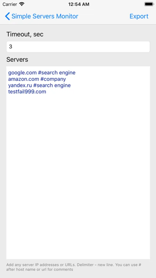 You can easily check the availability of your servers and sites. You can add server and site lists in plain text.