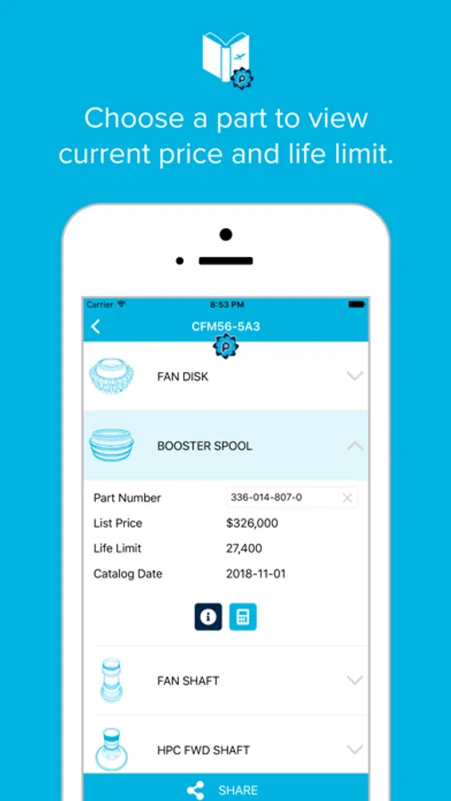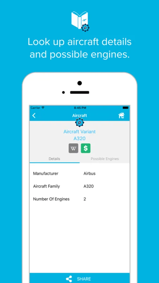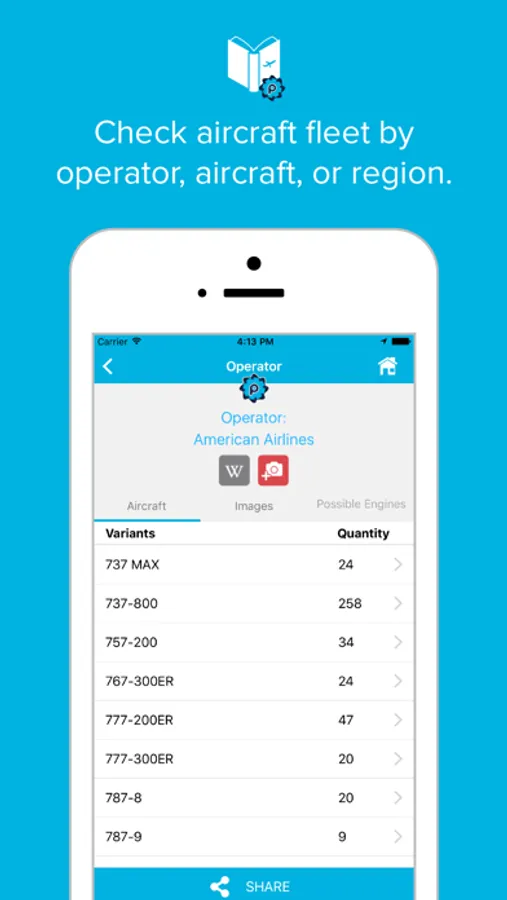 Quickly reference aircraft, engine & operator details with a touch of a button!