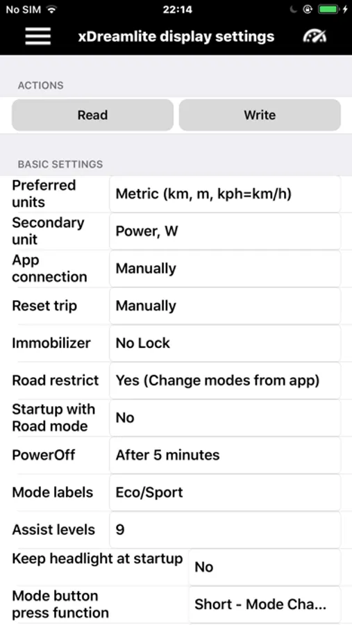 xDreamLite mobile app lets you connect to the xDreamLite Bluetooth e-bike display and change settings on your motor.