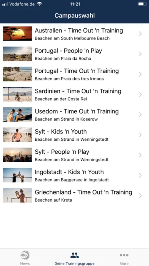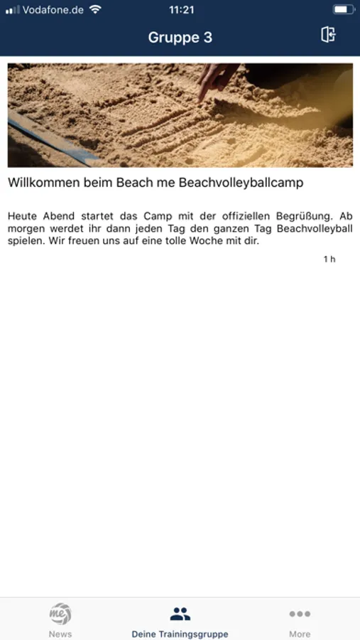Während des Camps wirst du über diese App mit wichtigen Infos versorgt. Auf welchem Court deine Gruppe Training hat, wo ist der Treffpunkt für die Party heute Abend, wann findet das Finale des Turniers statt. Alles was du dafür tun musst, ist deine Trainingsgruppe auszuwählen.