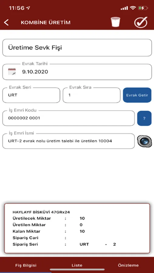 2. Üretime Sevk,