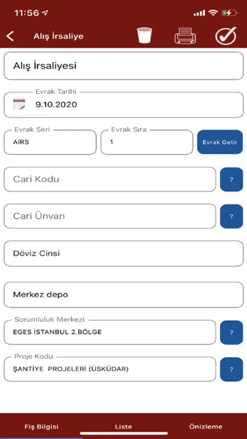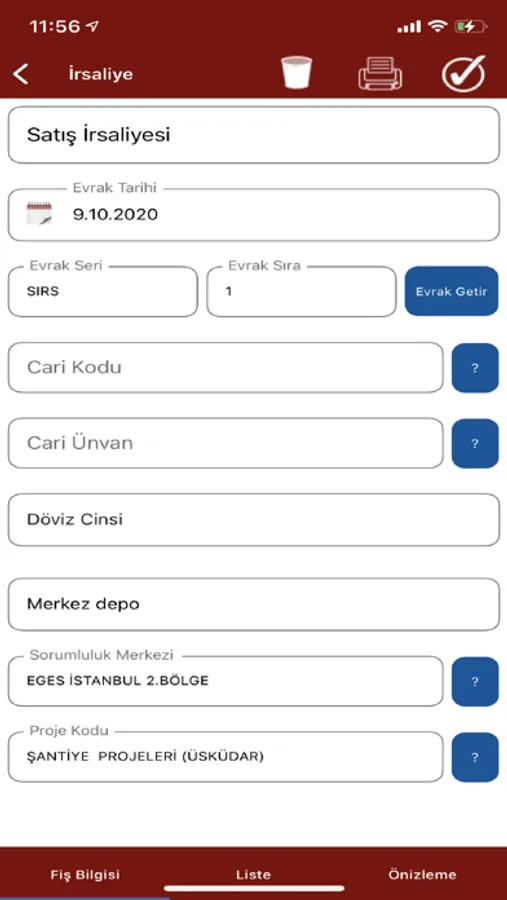 11.Depolar Arası Sevk Fişi,