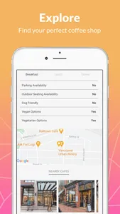 Use your phones GPS location services to discover great cafes on the list and map, viewing their business details and photos. Travel to the shop then get exclusive savings with Siply special offers.