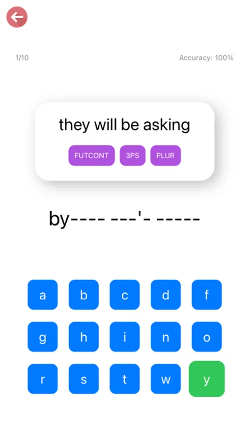 - Gapfill: can you spell out the missing word in the conjugated sentence?