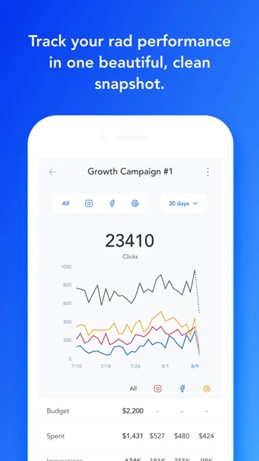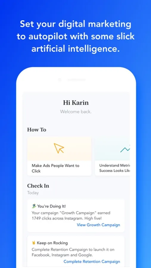 Once you create your campaign, you choose whether to post it on Facebook, Instagram and Google. Otis will then automatically choose the settings that are most optimal for your campaign, and automatically optimize it while it’s running. You will be able to see live results from each platform in the app. You can pause or edit your campaign at any time. You don’t need to commit a specific budget.