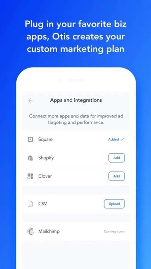 Otis connects your data sources such as your POS or email list to help you reach both new and existing customers online.