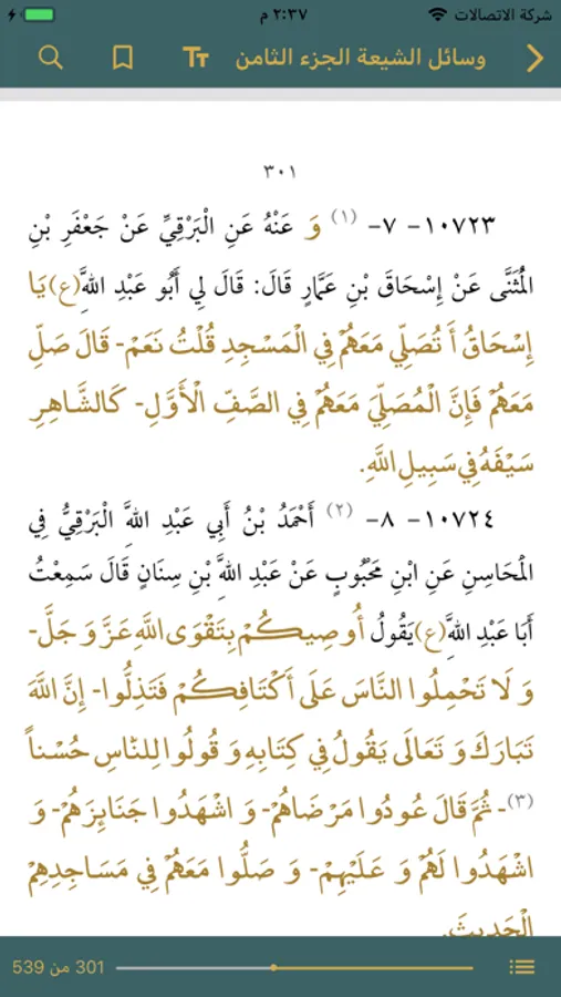 يشتمل هذا التطبيق على أهم الكتب الحديثية عند الشيعة، بترتيب مطابق تماماً لترتيب الكتب المطبوعة، وبخصائص كاملة من أهمها: