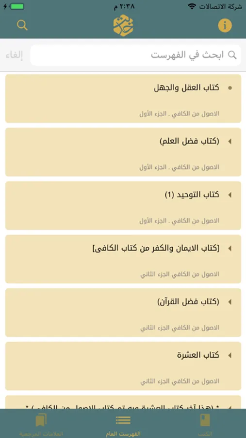 ٢ـ إمكانية البحث في متن الكتاب بشكل مستقل، أو في الكتب المختارة بواسطة المستخدم.