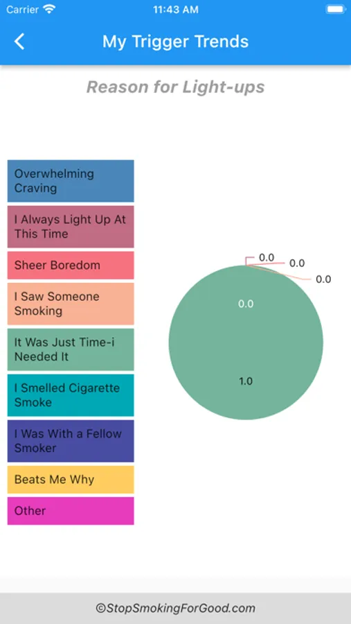 Option #2. The "Trigger Tracker©" and within it, the “Calendar Records” & "Trigger Trends©" -Ever-building precise records with colored graphs of what's pushing your light-up buttons - all stored offline, within the program, for instant retrieval.