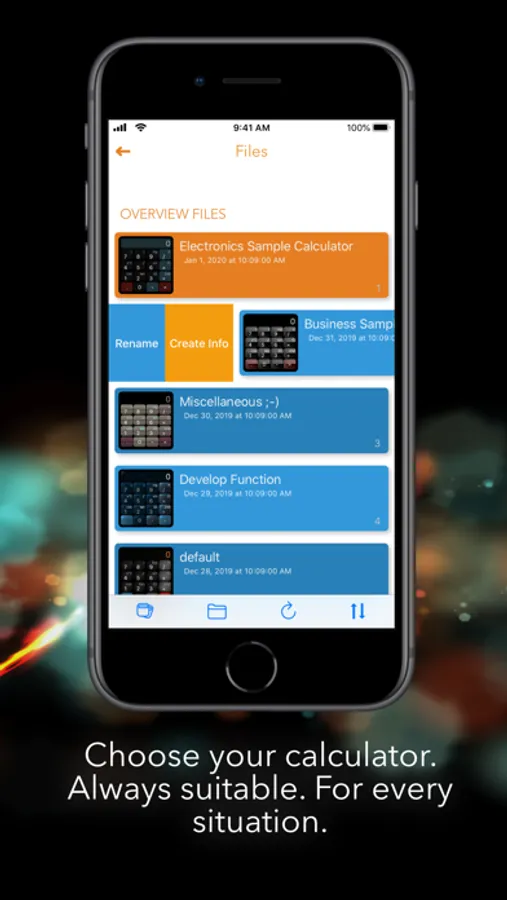 • Make the calculator even better. Create your own functions and constants! You can assign them on any key. Create your own professional calculators with your formulas!