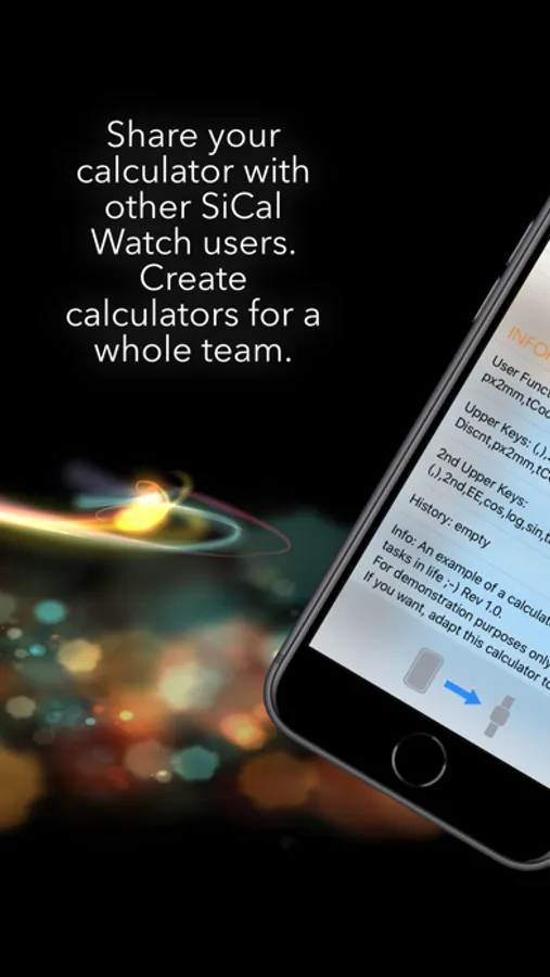 • Perfect teamwork. It is possible to send the saved calculators to the iPhone, organize them there and share them with other users of this app ...