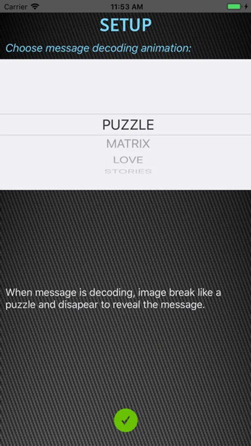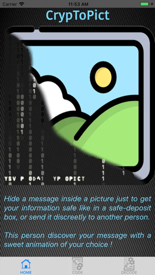 And also, because sometimes you want to send discreetly your feelings or message to a specific person, you can hide message in picture, send it with sms and give her the passwords to discover your message (you can choose between animations for a better effects).