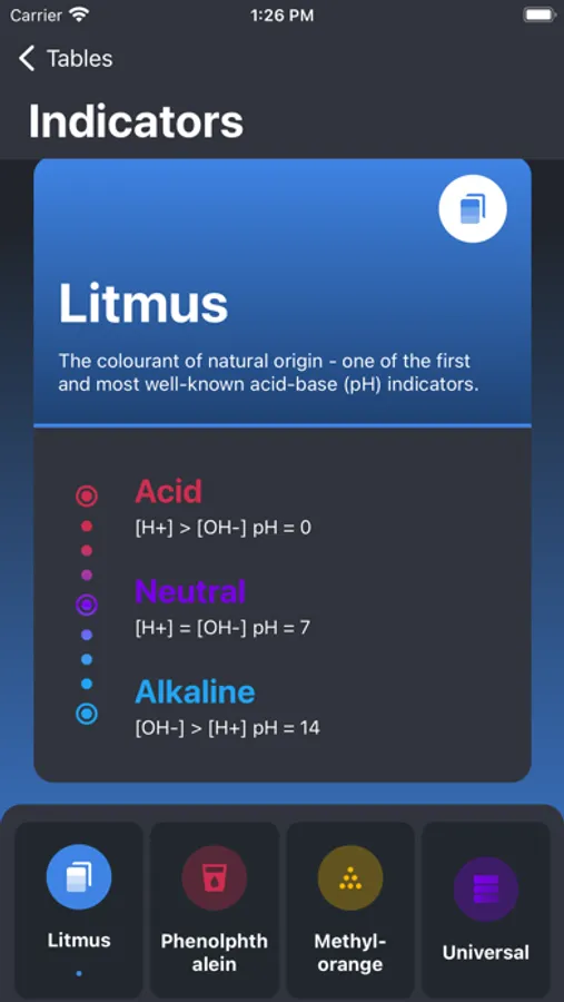 Periodic Table - is a free application for iPhone which displays the entire Periodic Table at startup interface. The table has a long-form approved by the International Union of Pure and Applied Chemistry (IUPAC) as the core. Besides the periodic table of chemical elements, you can use the Table of solubility.