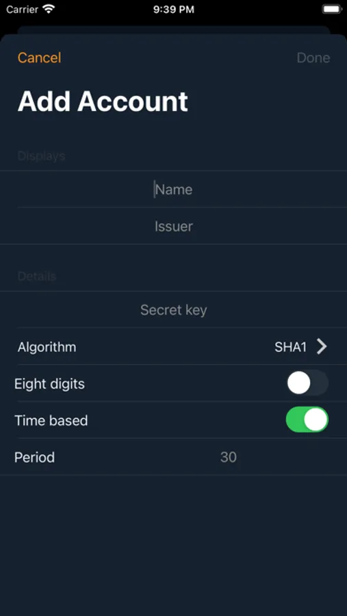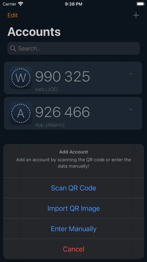 Scan the QR code issued by the two-factor authentication and automatically add the account you want to protect or select manual entry to manually set up the account.