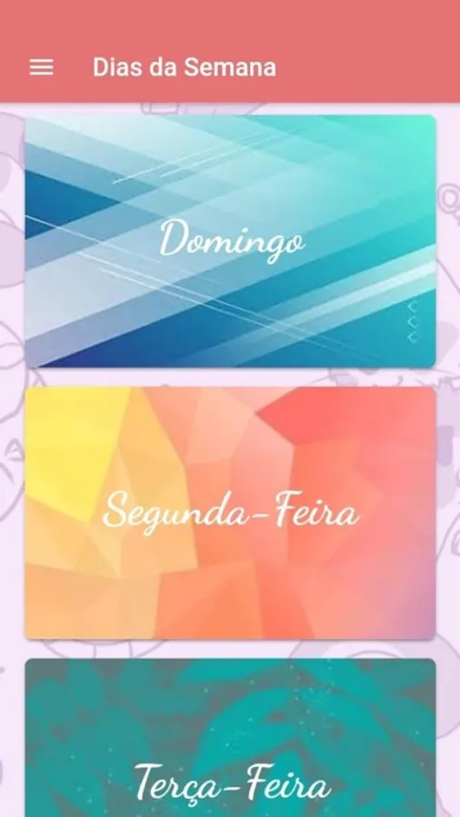 Dias da Semana você terá imagens para todos os dias: segunda, terça, quarta, quinta, sexta, sábado e domingo.