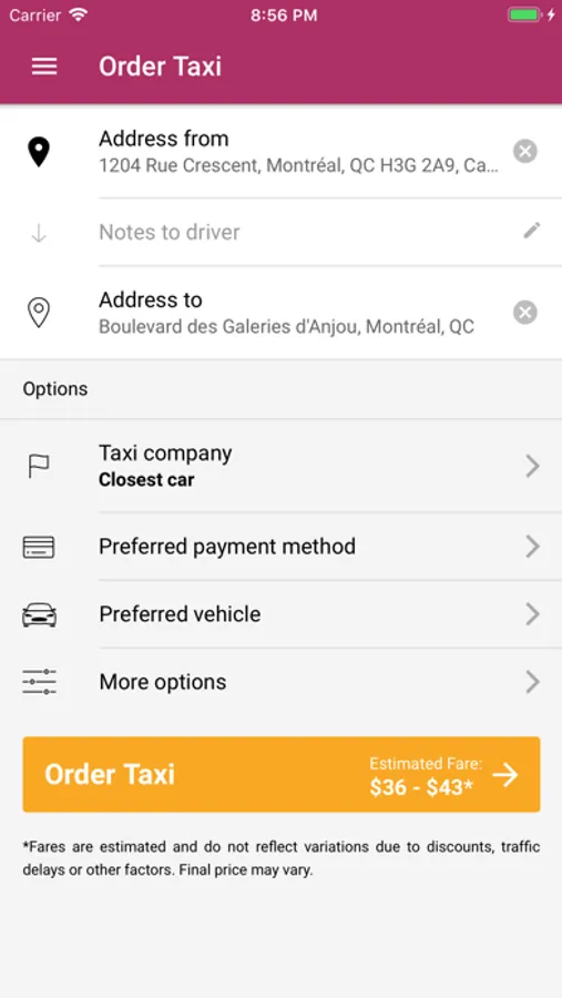 You can now easily get a quick estimate of your journey by simply filling up your pickup and destination addresses.