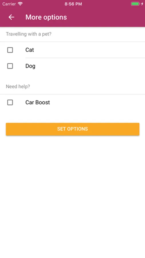 Would you like to pay by credit or debit card? Are you traveling with a dog? Do you need a Van?