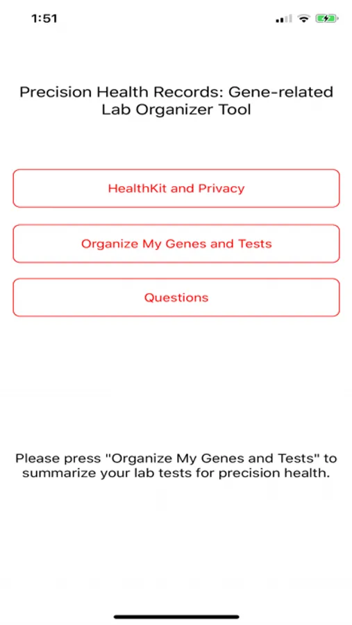 This app is an informatics tool that leverages current clinical genomics content (e.g. Health Level Seven International [HL7], Logical Observation Identifiers Names and Codes [LOINC]) – and assisted by a machine learning algorithm trained on the National Institutes of Health (NIH) Genetic Testing Registry – to quickly filter and organize any gene-related laboratory test results in your Health Records.