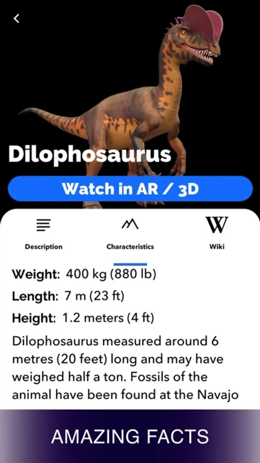 - realistic creatures in 3D/AR: T-Rex, Velociraptor, Diplodocus, Triceratops, Gastonia and more;