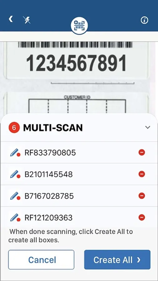 • Scan Iron Mountain barcodes to create new box records