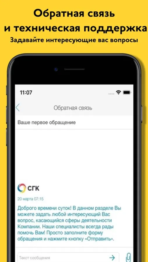 В приложении вы можете получать ответы от специалистов компании на обращения, а также информацию о выставленных начислениях, задолженности, необходимости поверки счетчиков.