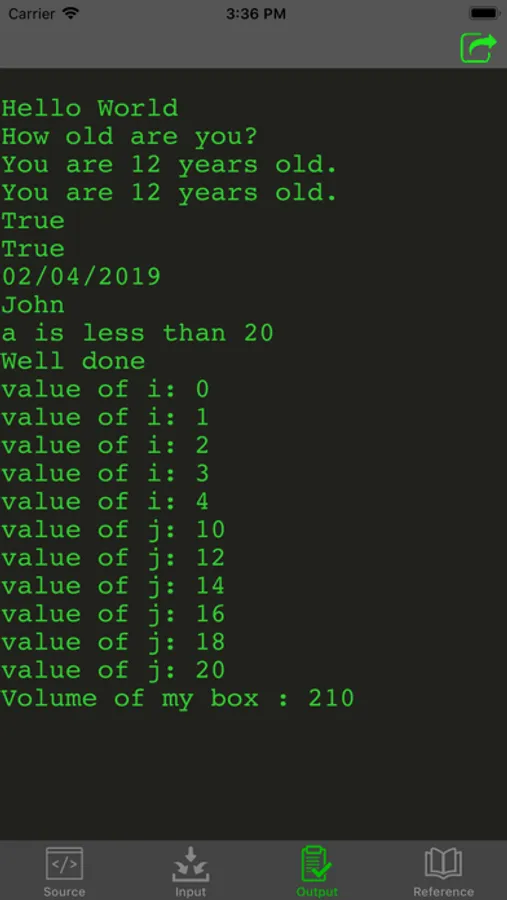 - This is a batch compiler; interactive programs are not supported. For example, if your program provides an input prompt, enter the input in the Input tab prior to compilation.