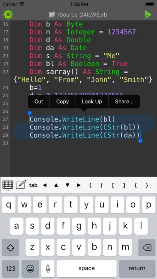 Write VB.NET code directly on your iPhone, iPad and iPod Touch! This app is ideal for learning and testing code snippets!