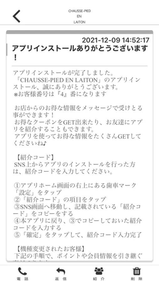 CHAUSSE-PIEDのアプリをSNSを通じてお友達に紹介する事ができます。