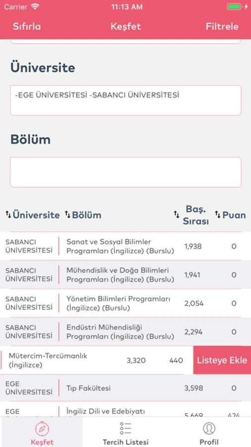 Tercihlerini akıllı filtre özelliği ile yap. Tercih listene ekle, sıralamaları tercih yapmadan önce, arkadaşınla ve ailenle paylaş.
