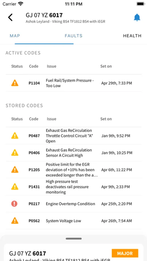 - Fault Code Count