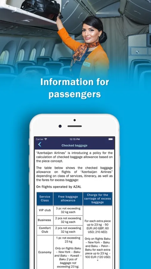 Updated information about baggage rules, the AZAL Miles program etc. is provided in the relevant section of the application.