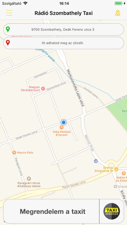 Rádió Szombathely Taxi taxirendelő alkalmazás! Jelöld ki térképen a felvételi pontot és kövesd folyamatosan ahogy a taxid érkezik érted! Nincs felesleges várakozás az út szélén, elég akkor kifáradnod, ha az autó már tényleg