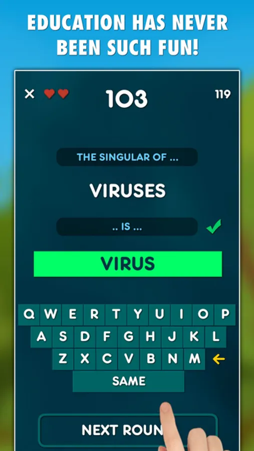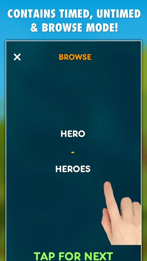 Play a challenge mode, relaxing practice mode or just browse through the words and their plural and singular forms!