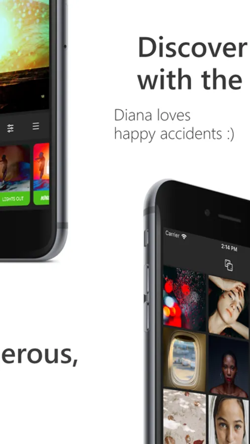 Diana is all about "lucky accidents", just tap the dice icon and I'll draw two pics from your camera roll and give you my proposition. It's so fun and addictive, trust me :)