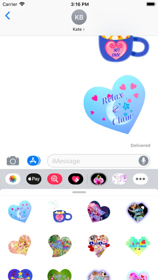 Tap and hold the desired Sticker, and drag into the conversation window. Release your finger to place