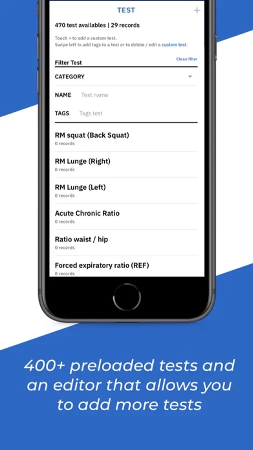 All the tests you need to control in a single application. Once you download the application you will find more than 400 categorized tests ready to be registered. From lab tests to the latest WOD, through global and analytical tests of all kinds. If the test you need is not included, don’t worry, this app allows you to create your own Custom Test and start recording data and creating reports.