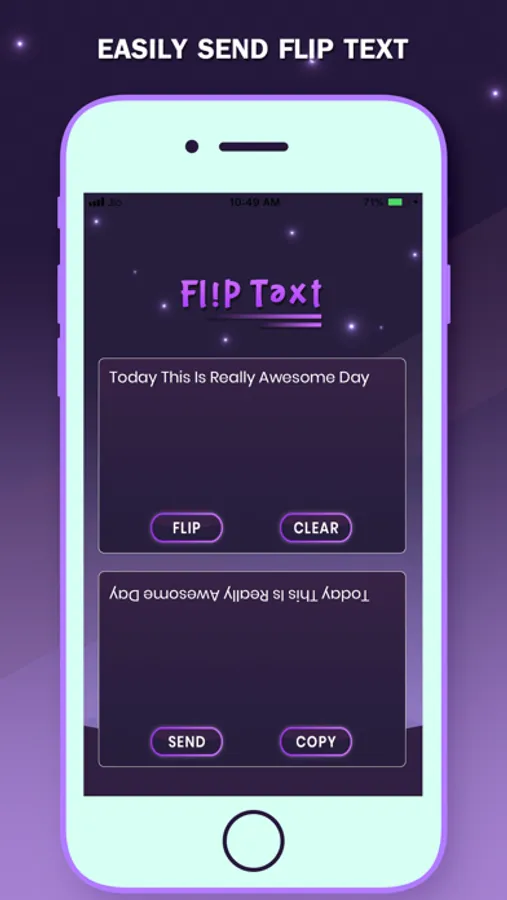 Flip Text Style - Upside Down with share it on social sides wherever you want on any sides.with this application you will put amazing text status on your social accounts and impress anyone.it is simple way to transfer your text into up downsides and copy with one tap on your mobile screen.